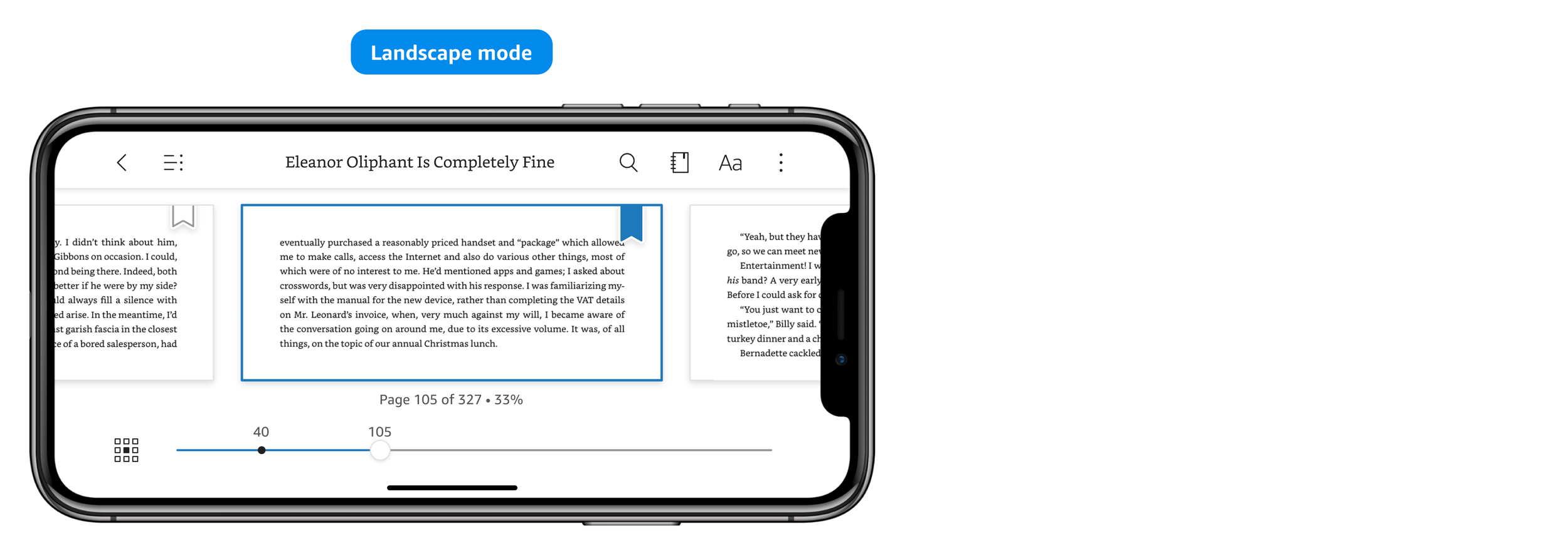 When I first took ownership of Kindle’s core in-book experience, I was given a task to refresh the chrome UI (the view in the image below, where we show a lot of reading features). I recreated all the icons to make them look more cohesive and made sure they meet the tap target requirement. I reduced redundancy in UI elements. Additionally, I redesigned the overflow menu (the 3-dot icon on the top right corner). Customers love seeing their book cover in the new overflow menu. They also like the explicit explanation for some reading features.
